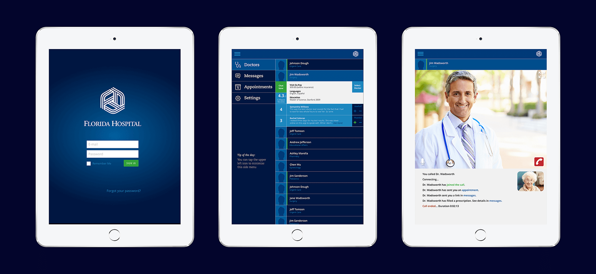 Florida Hospital at-home care app. Patients can visit a doctor who can diagnose and prescribe medicine from a mobile device.